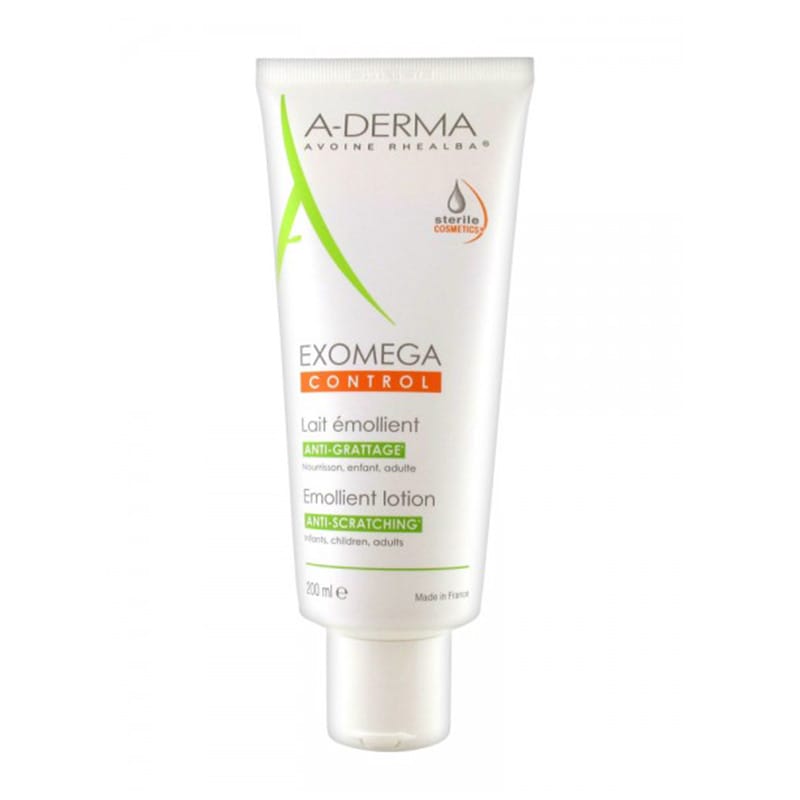A-DERMA Exomega Control Lait Émollient 200 ml à la texture riche est un lait anti-grattage recommandé pour les peaux sèches à tendance atopique de toute la famille.