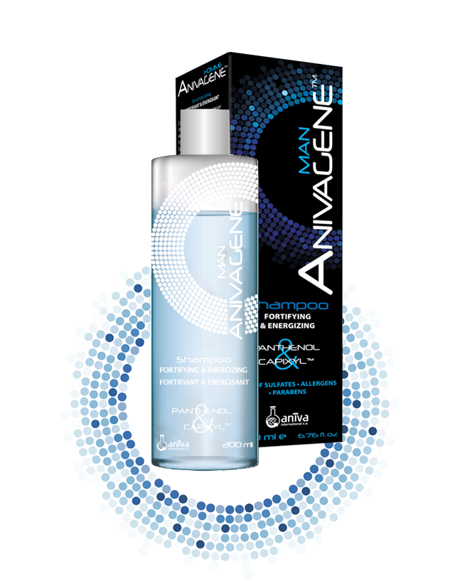 Anivagene shampoing homme anti chute est à base de Panthénol et Capixyl™