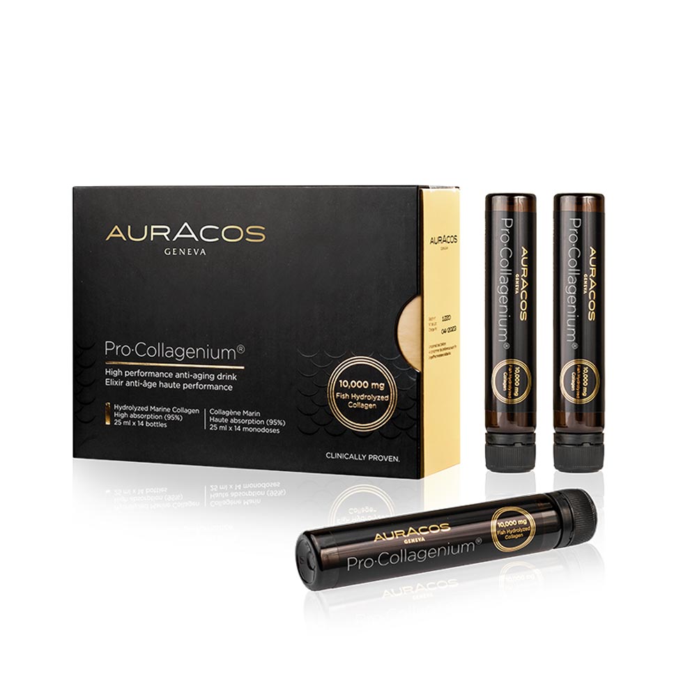Auracos Pro Collagenium est un complément alimentaire révolutionnaire, en solution buvable, à base de collagène marin super-concentré (10.000 mg) : un composant reconnu pour sa forte contribution à une apparence parfaite de la peau en agissant de l’intérieur, et non pas de manière superficielle, comme c’est le cas pour les crèmes et les sérums.