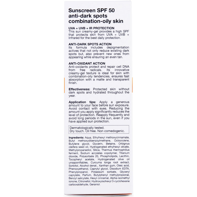L’écran solaire anti-tâche réduit les tâches cutanées. Sa formulation comprend de puissants agents dépigmentant qui traitent les taches existantes, les réduisent visiblement et évitent l’apparition de nouvelles taches.