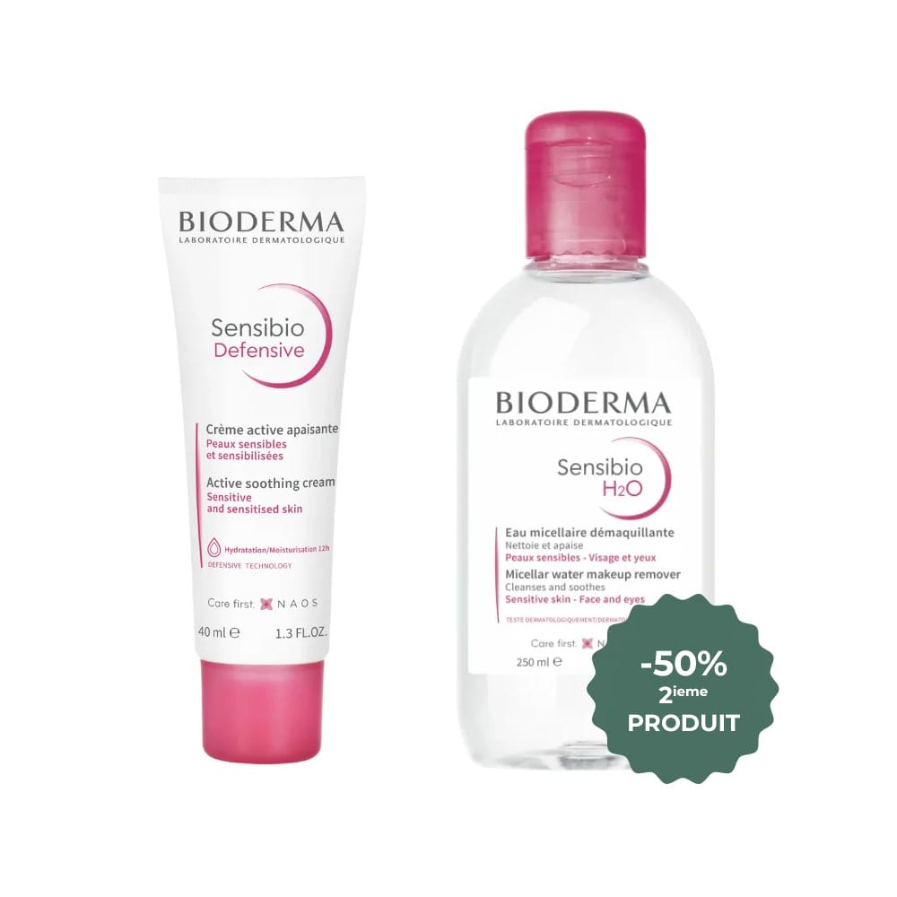 Bioderma DUO Sensibio Defensive Crème Active Apaisante 40ml + Eau Micellaire 250ml , un combo parfait pour prendre soin des peaux sensibles. Ce duo associe une crème active apaisante pour renforcer la barrière protectrice de la peau et une eau micellaire démaquillante pour un nettoyage en douceur. Une solution complète pour une peau plus forte, apaisée et purifiée.