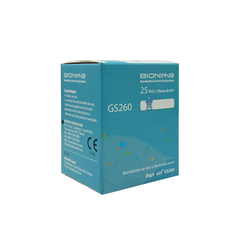 Bandelettes de Glycémie, pour mesurer la glycémie dans le sang en utilisant les glucomètre Bionime GS260