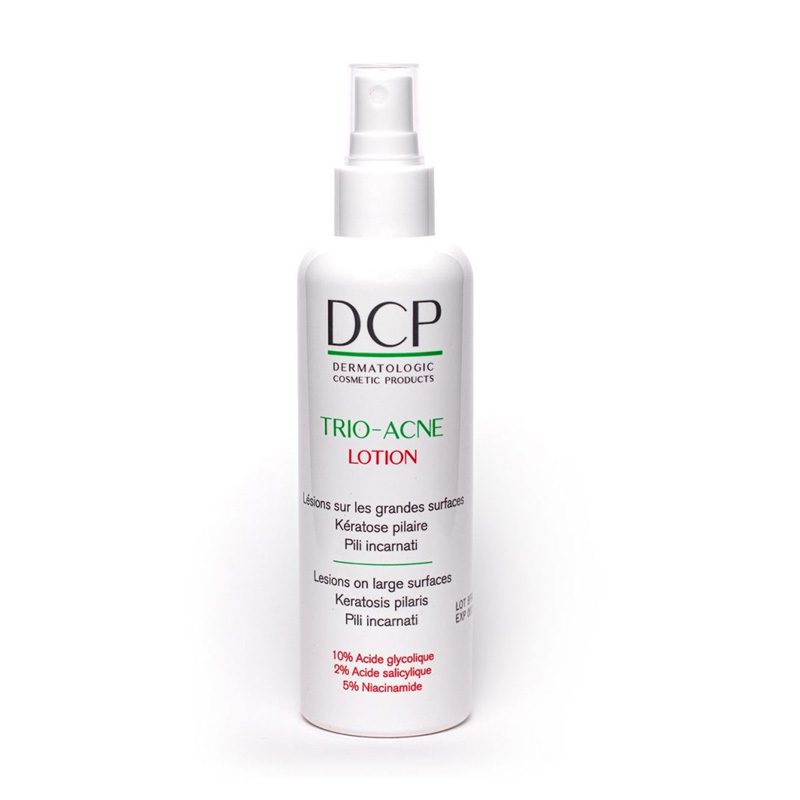 DCP TRIO ACNE LOTION 200mL Conçu spécialement pour les peaux à tendance acnéiques, DCP TRIO-ACNÉ LOTION est indiqué pour les lésions des grandes surfaces, les kératoses pilaires et le pili incarnati. La peau devient plus nette, lisse et purifiée.