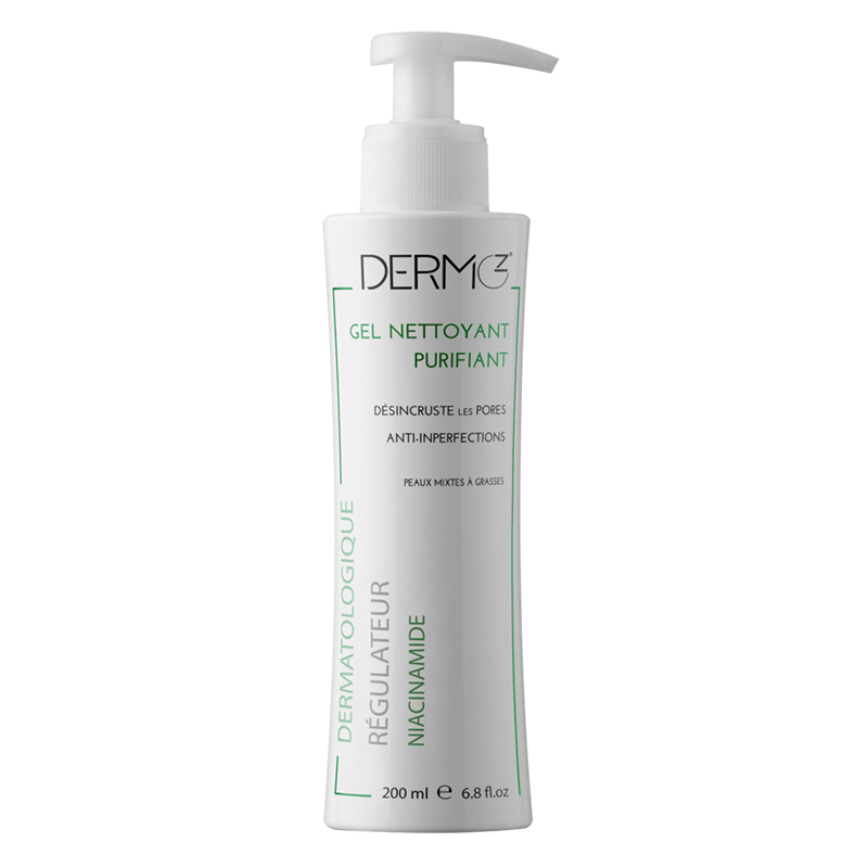 DERMOZ GEL NETTOYANT ET PURIFIANT 200mL est un gel nettoyant et désincrustant pour les pores formulé spécialement pour les peaux sensibles, mixtes et grasses à imperfections. Il élimine en douceur les impuretés, les résidus de maquillage et les excès de sébum sans agresser le film hydrolipidique grâce à ses agents hydratants, afin d’avoir une peau purifiée, nette et assainie.