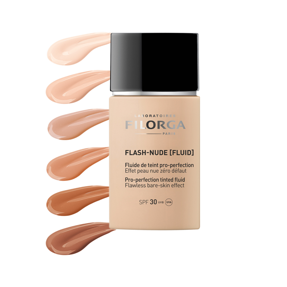 Le fluide de teint Flash Nude uniformise le teint et illumine votre peau tout en la protégeant contre les rayons du soleil et contre les signes visibles de l’âge.