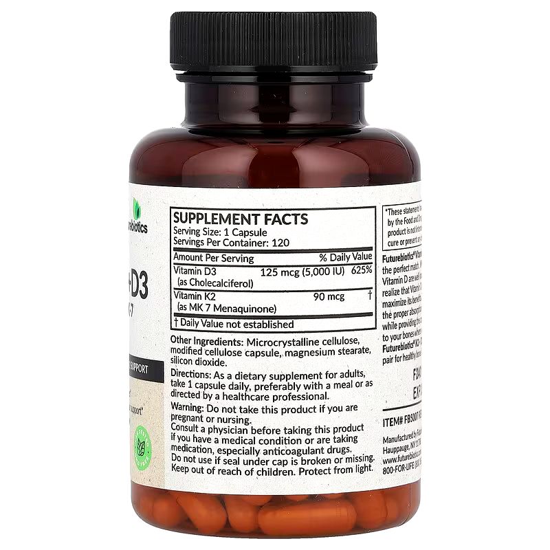 - 125 mcg de vitamine D et 90 mcg de vitamine K2 MK-7 par capsule