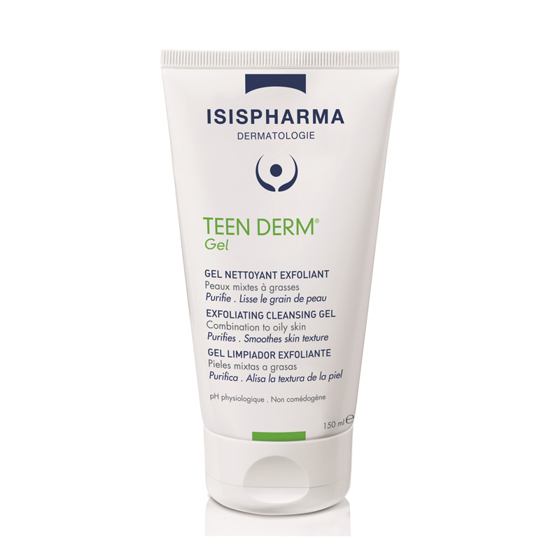 ISISPHARMA TEEN DERM GEL NETTOYANT EXFOLIANT 150mL a été spécialement développé pour les peaux mixtes / grasses à imperfections.