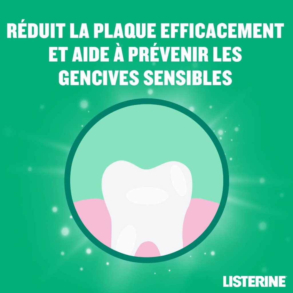 Utilisé deux fois par jour en complément du brossage, LISTERINE Protection Dents et Gencives procure une protection pour des dents et des gencives plus saines et pour une sensation de propreté qui dure 3x plus longtemps que le brossage seul. C’est cliniquement prouvé*, LISTERINE® Protection Dents et Gencives a une triple action :