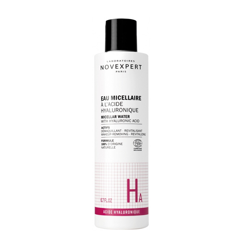Novexpert Acide Hyaluronique Eau Micellaire Bio 200 ml est une eau douce 100% d’origine naturelle, au pH doux, enrichie en acide hyaluronique pur, molécule star de l’anti-âge.