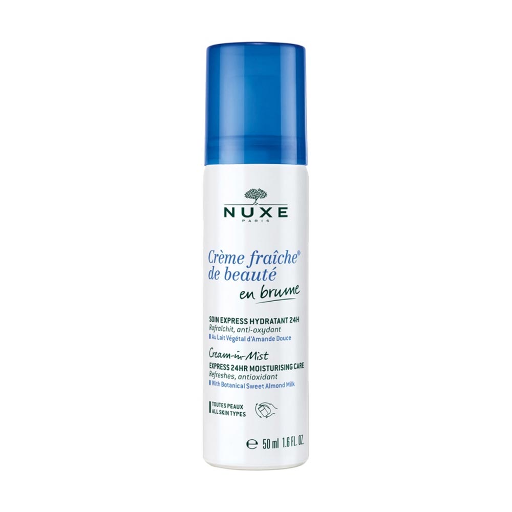 Nuxe Crème Fraîche de Beauté En Brume Soin Express Hydratant 24H 50 ml est un soin qui rafraîchit avec une action antioxydante. Il est idéal pour fixer le maquillage. Enrichie en Lait Végétal d’Amande douce, cette brume aérienne au délicieux parfum de Fleur d’Oranger enveloppe le visage d’un confort tout en fraîcheur.