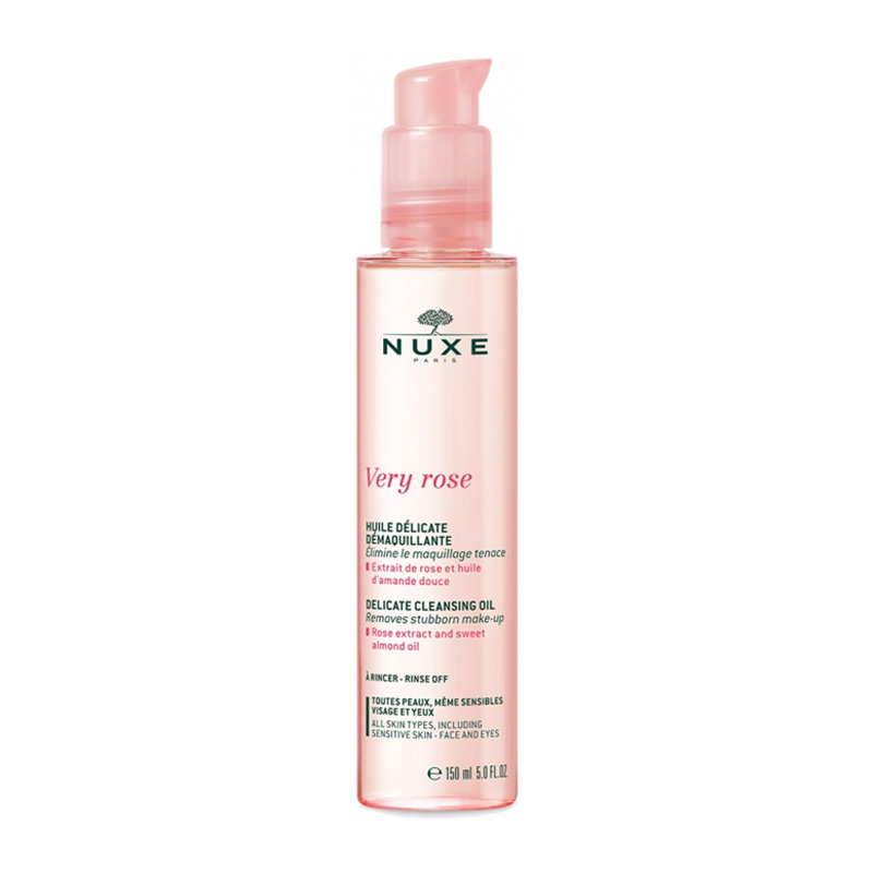 Nuxe Very rose Huile Délicate Démaquillante 150 ml est une huile à l’extrait de rose et huile d’amande douce qui élimine tous types de maquillage même waterproof tout en protégeant la peau du calcaire et en respectant son équilibre . Elle respecte la flore cutanée de toutes les peaux, même sensibles.