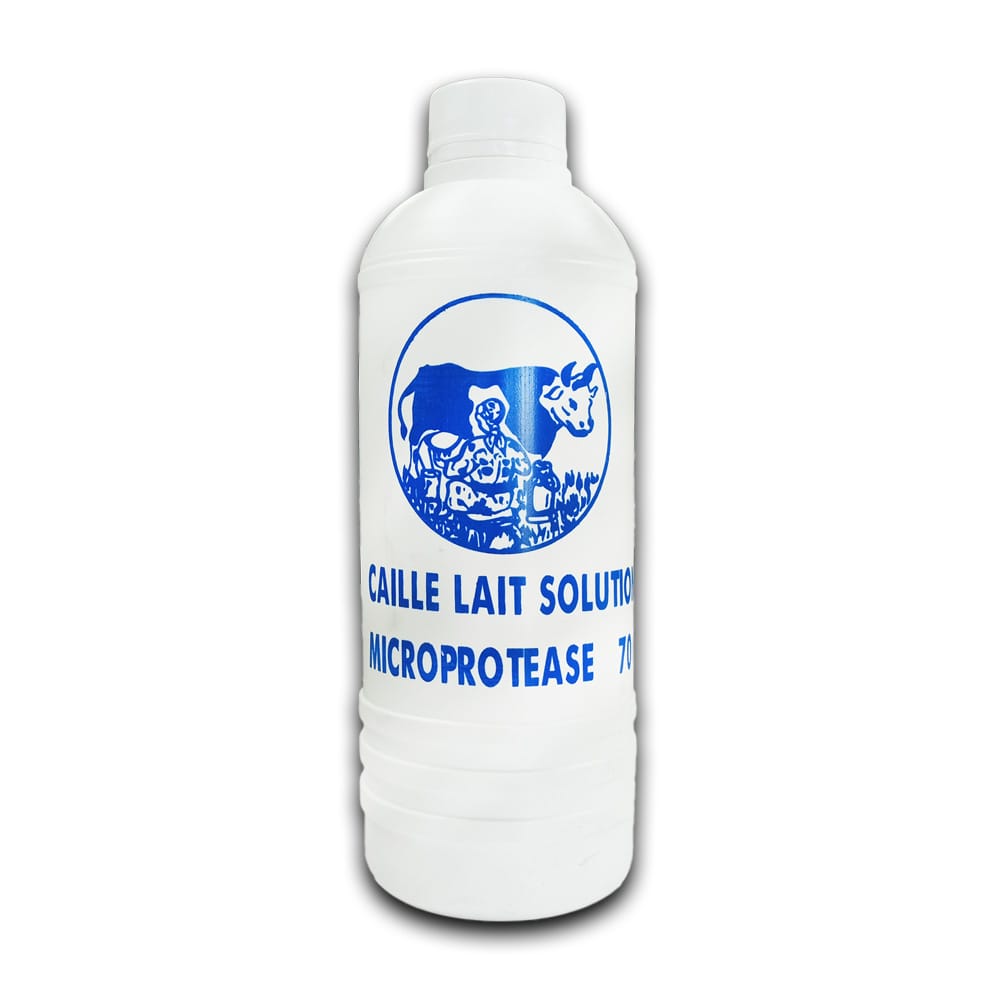 Présure caille lait solution est un coagulant du lait d’origine non animale extrait de la caillette de jeunes ruminants. Elle contient des enzymes protéolytiques, comme la chymosine et la pepsine, qui caillet le lait.