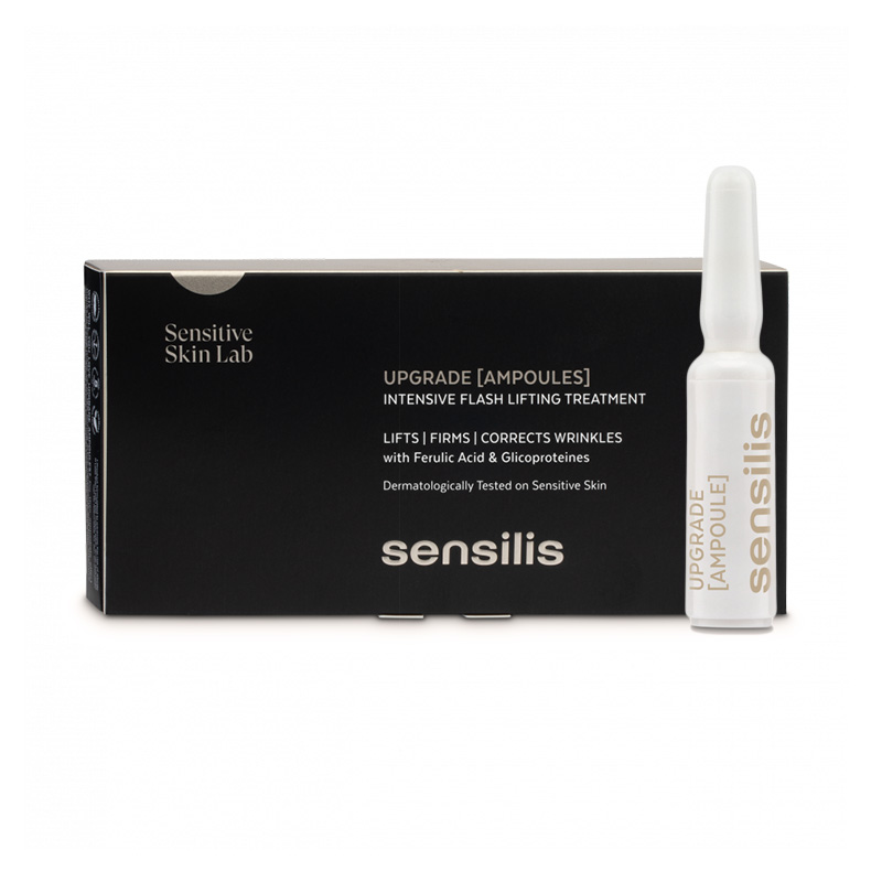 SENSILIS UPGRADE AMPOULES Les ampoules upgrade sont un traitement intensif qui exerce une action hydratante, antioxydante et raffermissante. Et cela grâce à sa teneur en acide férulique, glycoprotéines précurseurs des protéoglycanes et à la puissance de la technologie génomique qui protège votre ADN cellulaire.