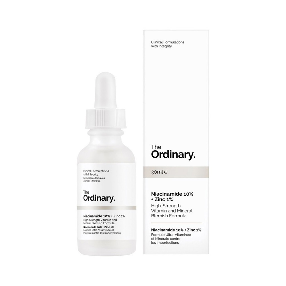 THE ORDINARY NIACINAMIDE 10% + ZINK 1% Une formule de vitamines et de minéraux très efficace conçue pour réduire l’apparence des imperfections de la peau et la taille des pores.