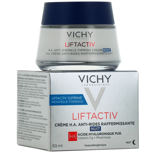 Appliquée chaque soir, cette crème anti-rides et raffermissante hydrate la peau en profondeur et booste le taux d’acide hyaluronique dans la peau. La peau est plus douce, confortable et lisse au réveil.
